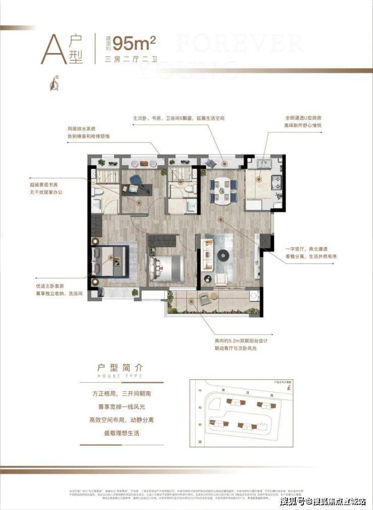 建面95平3室2厅2卫▼
