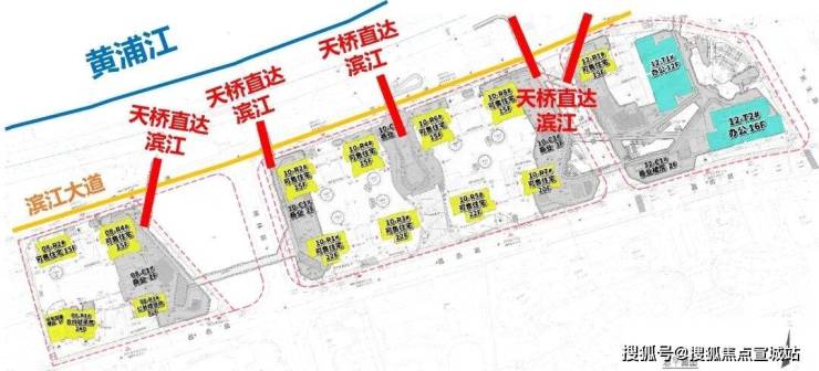 所有住宅楼栋都通过约9-22米的巨柱架空设计进行了抬高,楼栋悬浮在黄浦江畔,让每一户都能最大化地享受到临江视野和景观绿化,惬意滨江生活感满满。