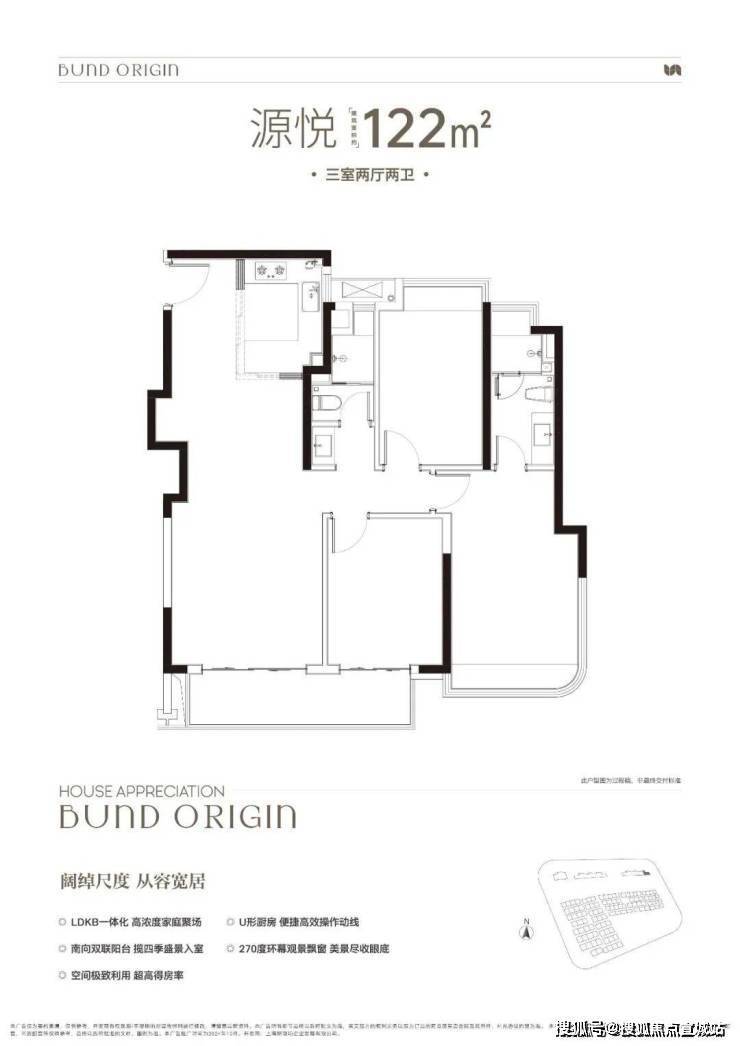 A户型是4房2厅2卫格局,三开间朝南+LDKB一体化+全卧室带飘窗+主卧套房设计+动静分离,居住功能性更强。