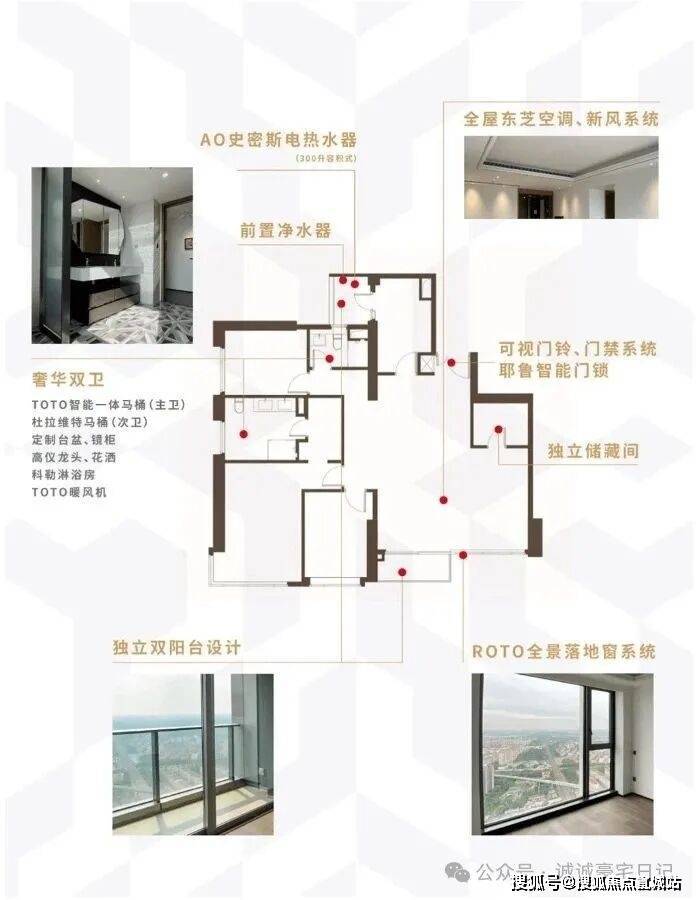 项目室内交付配备独立中央空调、新风、落地窗、独立卫生间、智能入户门。