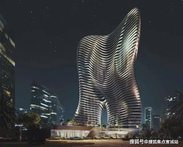 建筑轮廓从法国里维埃拉的海岸线与迪拜沙丘中汲取灵感,外观动感流畅,阳台如丝带般环绕楼体,呼应了布加迪跑车特有的流线造型。