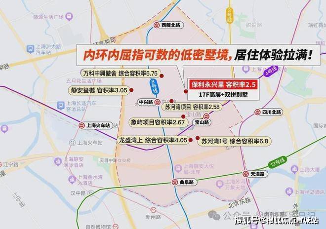 如今,内环内容积率低于2.5的项目已经屈指可数了。黄浦核心多是超高层+别墅的组合,静安内环则多是楼层20F以上的社区。