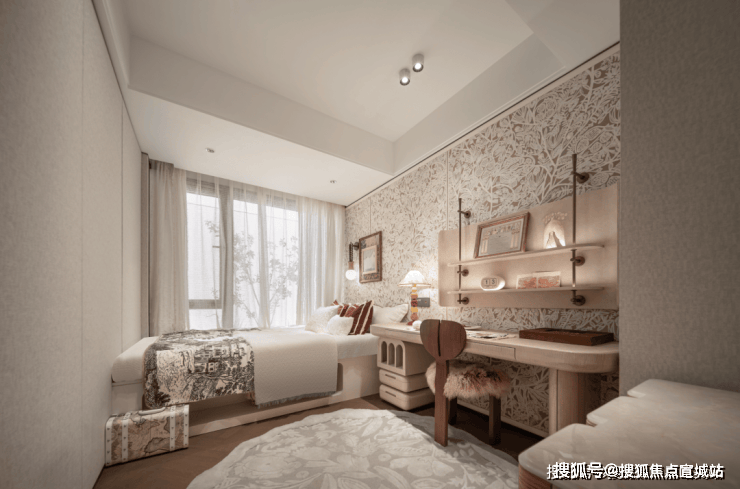 而这个北次卧不仅能放下一张完整的床,还能放下一张大尺寸的学习操作台或梳妆台,甚至还有空间做一些收纳柜和床头柜等.尺度感和实用性拉满!