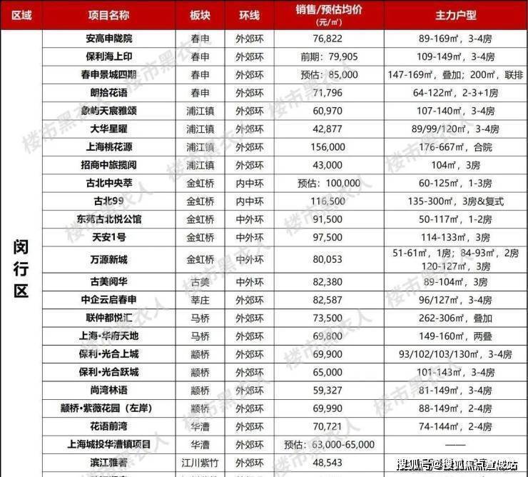 那么,闵行各板块还有哪些在售or待售项目呢?