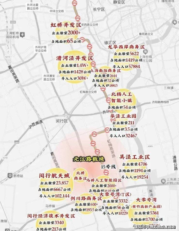 同时,还能依托15号线这条上海科创产业的超级动脉,一路贯穿虹桥开发区、闵行经开区、大零号湾等重要产业集群,直接把沿线14个产业园区70万+产业人口“一网打尽”!