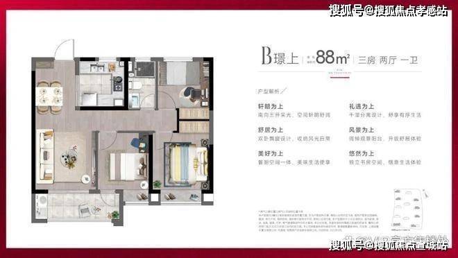 产品方面,项目主推建面约88-98㎡精装3房,功能性和品质感兼具。