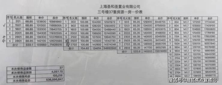 最新一房一价表: