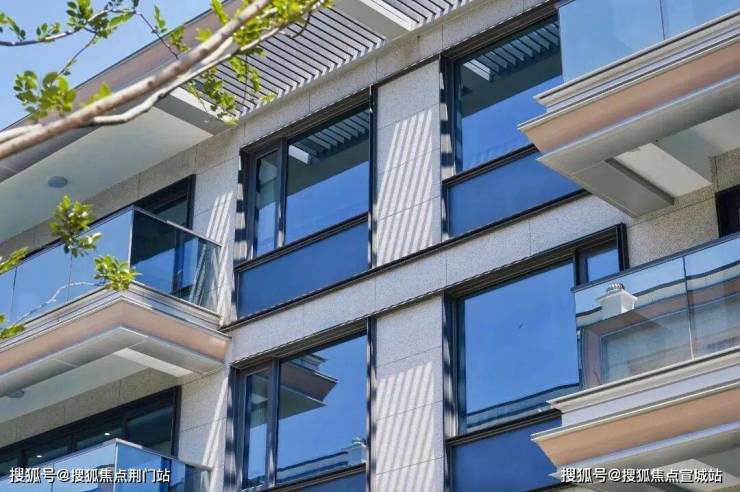 宽近32m的社区大门尽显恢弘,步入其中,一场关于品质与仪式感的归家之旅正式启幕。首先,外立面作为第一道风景线,率先映入眼帘——现代风格化繁为简,以极致工艺营造高颜值的质感立面,香槟色木纹铝板+银色金属线条,搭配大面积的通透玻璃,勾勒出灵动的城市天际线,展现出建筑独有的美学魅力。