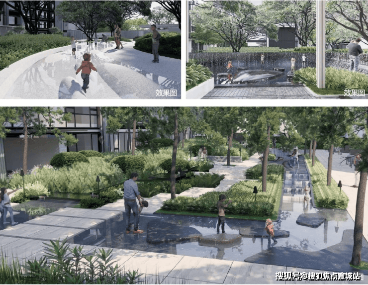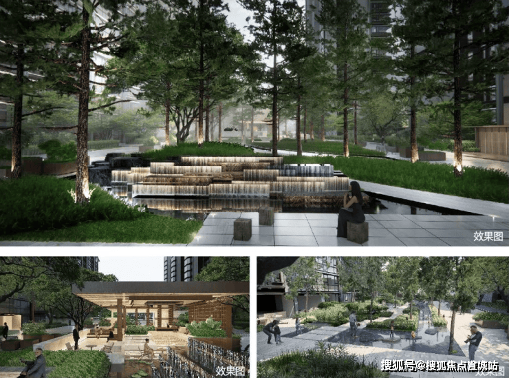 社区内部围绕叠墅区、小高层区以及高层区,打造三大主题花园中庭。