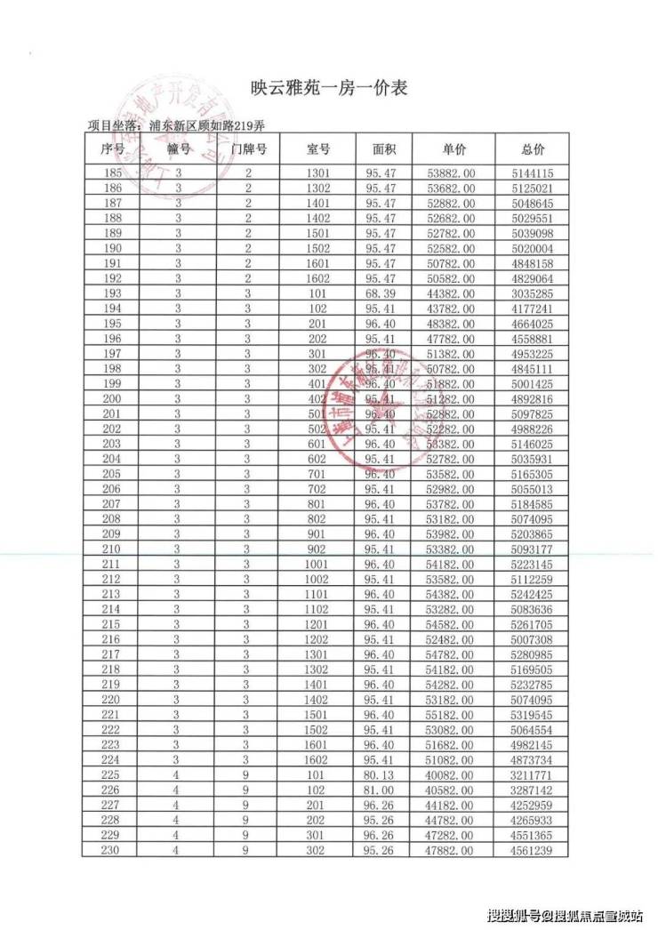 一房一价表