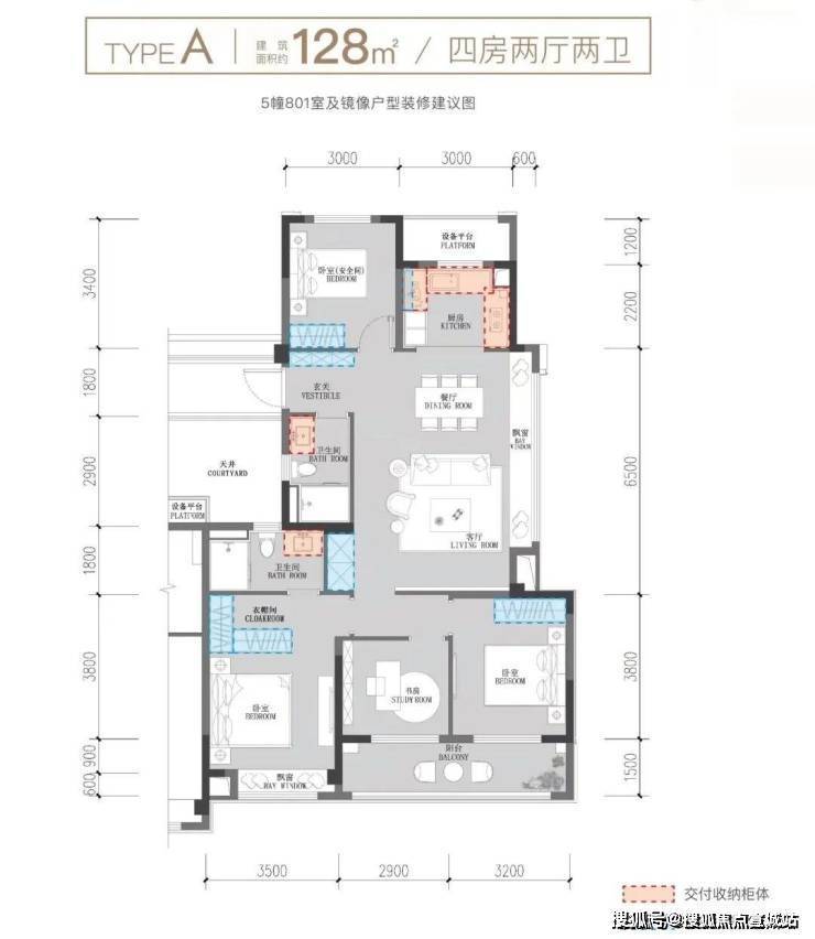 【户型面积】:105㎡-128㎡-142㎡