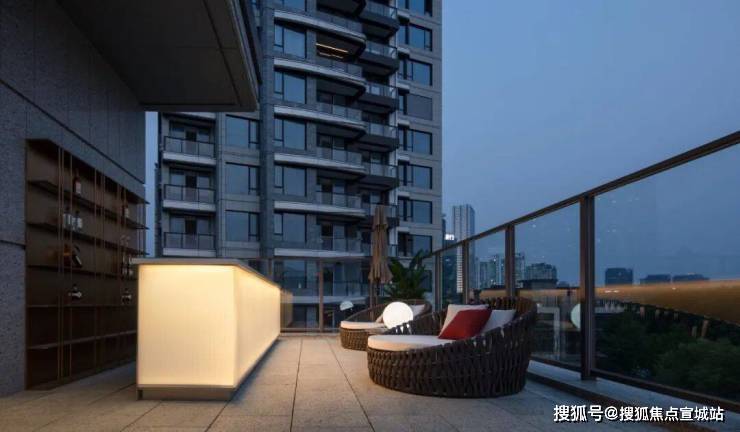 露台呈现了另一个舒适的休闲区域,通过区域感的塑造,沉浸式社交体验,让空间的平面布局与组成元素相互对话,满足动与静、开放与半开放的功能需求。