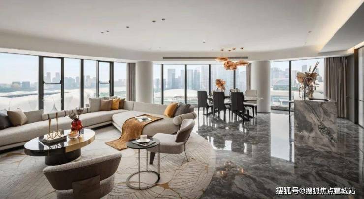 空间尺度层高3.15-3.3米,460㎡户型瞰江视野无遮挡面积段覆盖广,满足多类型需求
