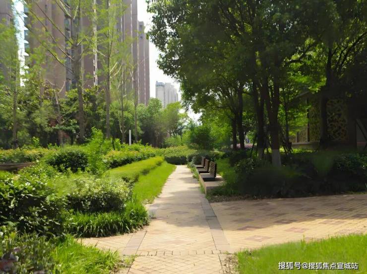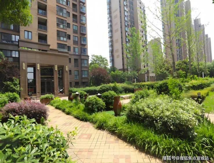 社区内部绿化:楼栋间绿植丰富,中央景观带、水景小品、休闲步道布局合理,绿化率达40%