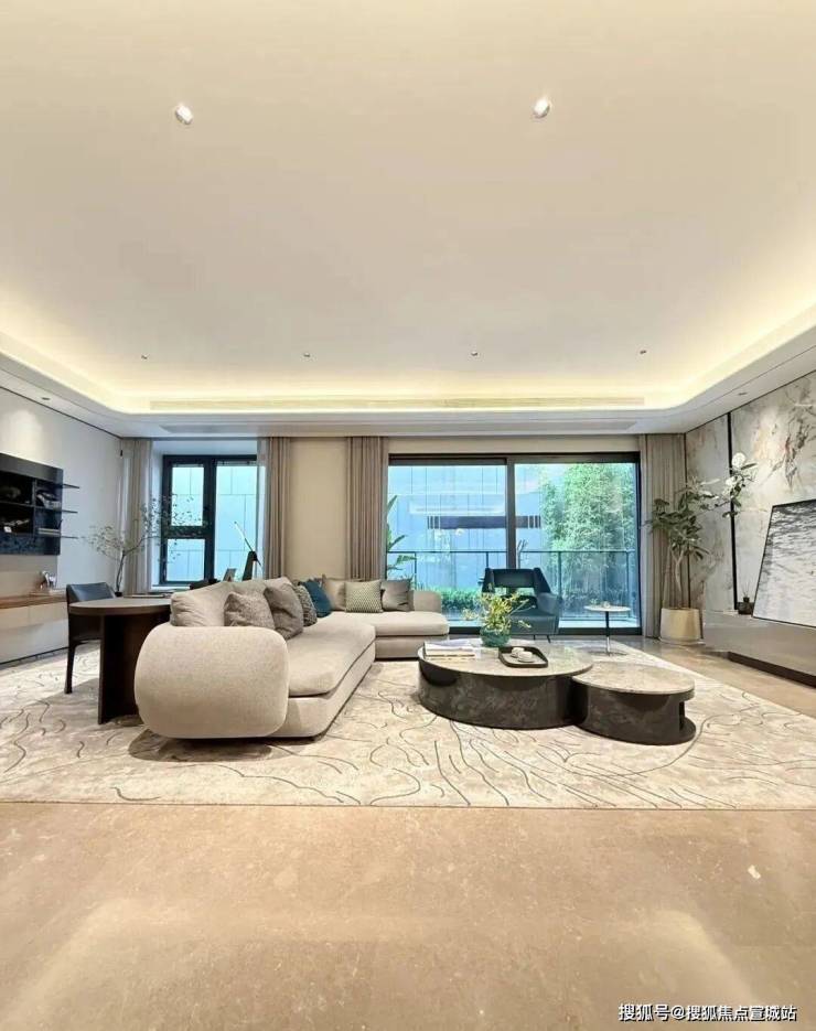 室内设计,秉承摩登东方的理念,设计以人、生活为中心,从空间本体和情感层面都回归生活,270度环幕采光,开放式会客厅设计,兼具尺度感与功能性。