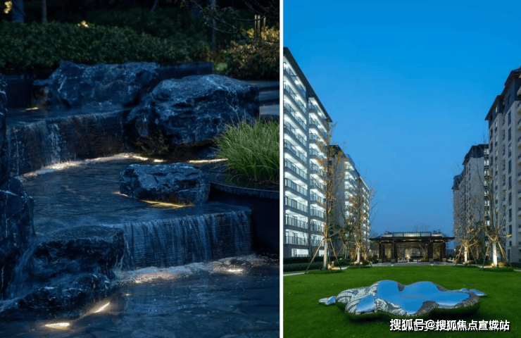 精致的凉亭叠水景观让整个园区中轴更显仪式感,中央草坪有两排银杏守护,镜面云朵雕塑灵动活泼,微风树影,一池潋滟久久荡漾心底,各类植被以及精致小品次第铺陈,多重进阶式景观营造出高雅气度。