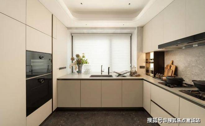 厨房内竹纹夹丝玻璃门、威乃达坡璃烤漆橱柜、与卡拉拉金大岩板台面相融,同时嘉格纳十件套满足每一种味蕾的偏好,厨房内,灶台/油烟机/洗机/冰箱(独立分体设计)五件套;向外,嘉格纳咖啡机/暖碟机/酒柜/烤箱/蒸箱等西厨五件套配置,构筑中西共融的烹饪场域。