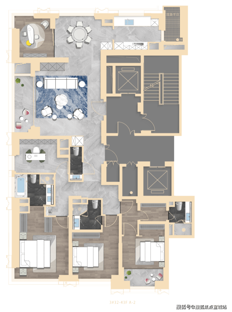 其中3#为超高层,北向可观小区绿化和苏河景观,高区可瞰三件套盛景。