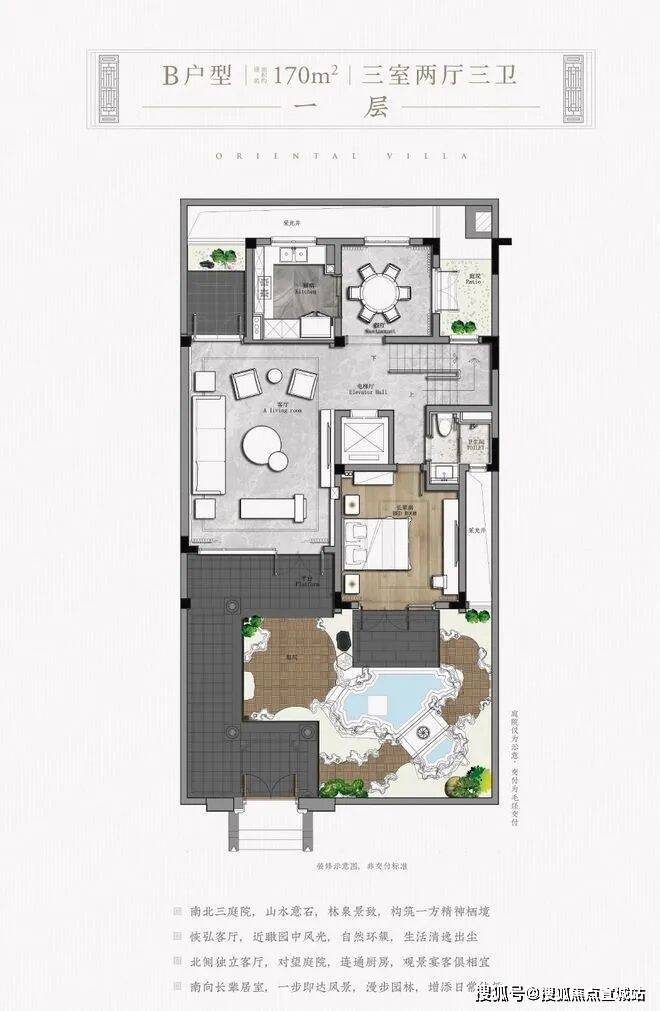 部分还带有下沉式庭院,将传统园林中的侧院概念引入地下,配合绿植、卵石、青苔,打造更有禅意的理想家园。