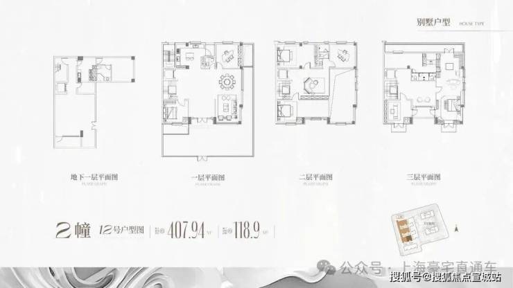 户型布局:以一套 412.27㎡的联排别墅为例,地上 3 层、地下 2 层,地上面积 253.27㎡,地下面积 158㎡,带有南花园、北花园、露台及产权车位。3 楼为朝南主卧套房设计,挑高 6m 带露台 23㎡;2 楼是 2 室 1 厅 2 卫,南卧套房设计;1 楼是 2 厅 2 厨 1 卫,带南入户花园 26㎡,北入户花园 6.6㎡。