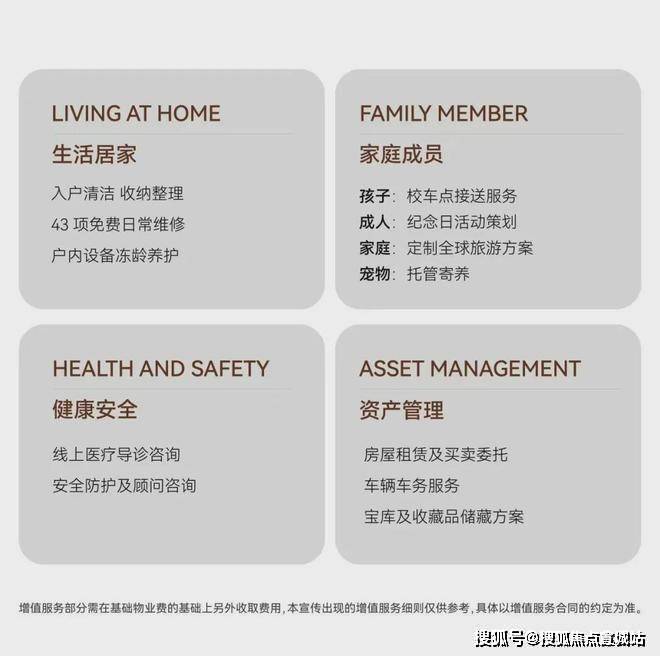 古北99迭代升级古北的生活方式,同源世界奢华酒店基因,从时间、空间、私属三个维度,共280余项标准化服务细则着手,打造自然无痕的服务内容;并充分考虑当代高净值业主需求,提供日常居家服务、健康安全、资产托管等增值服务,如包含儿童接送服务、入户保洁、43项免费日常维修、宠物托管、私人定制全球旅游方案、车辆养护代检等。