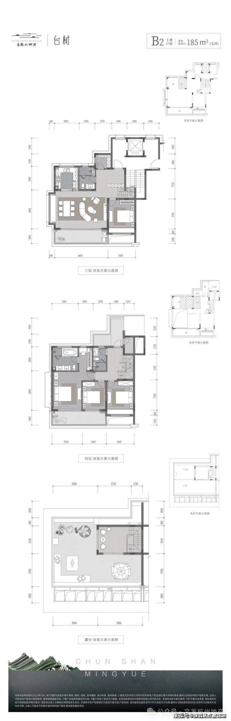 叠墅总高四层,下叠面积160平米+上叠面积155平米,上叠面积185平米+下叠面积169平米