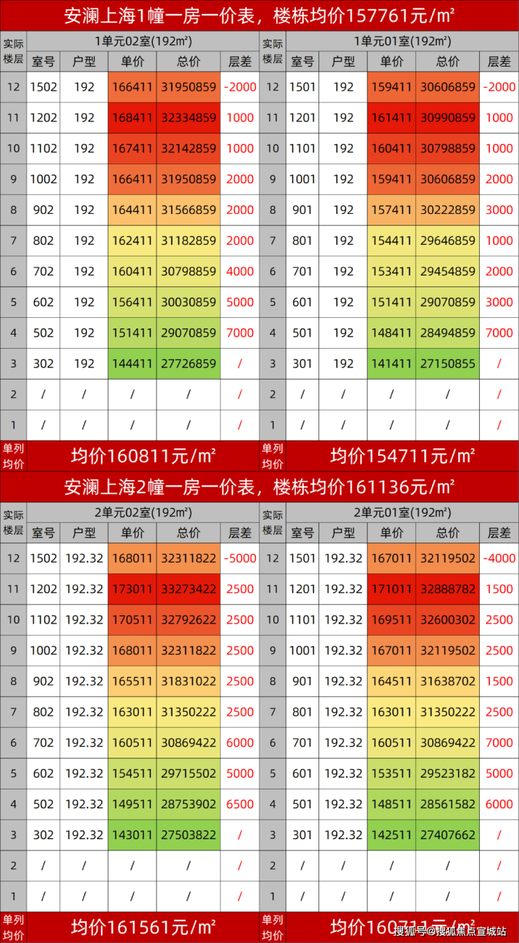 具体楼栋房源的一房一价如下: