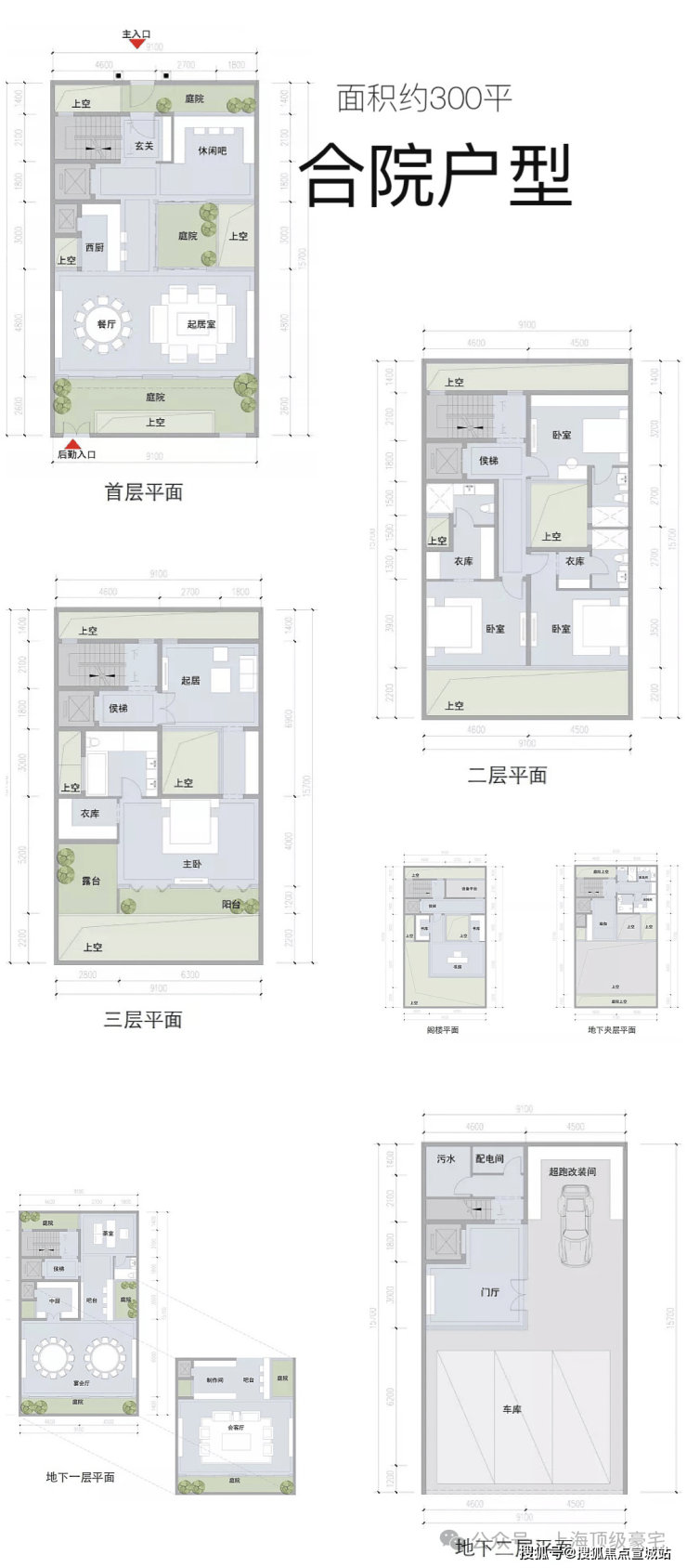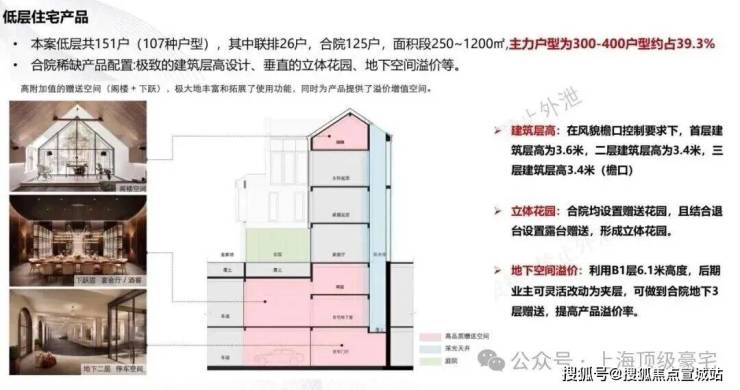 4. 上海风貌层高最高的产品,很多户型层高:地下6.1米,一层3.9米,二层3.6米,三层3.6米