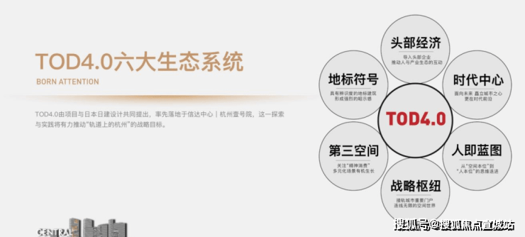 杭州壹号院是全球TOD4.0模式的开山之作。由我们和全球领先的TOD规划设计公司日建设计携手,共同提出的。TOD4.0,从之前的“站城一体化”升维到“站城人一体化”。对“人”的关注,构成了TOD4.0的核心代际区别和精髓所在。