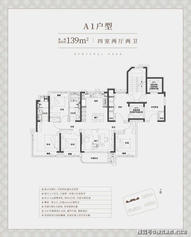 建面约110㎡B1户型,南向面宽也做到了约12.3米,单就这个面宽就秒杀了市面上同类型或同价位段的新盘。