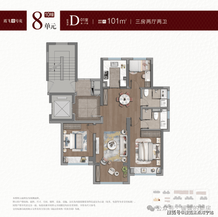 主力户型:101㎡三房、128㎡四房、188㎡四房,总价约864万起。