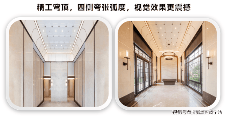 比如,小区入户大堂、楼栋入户大堂的穹顶,均运用极高曲率的弧形造型塑造,弧度可以拉高人们对层高感知,从而更好达到空间延展的效果,视觉效果更震撼。