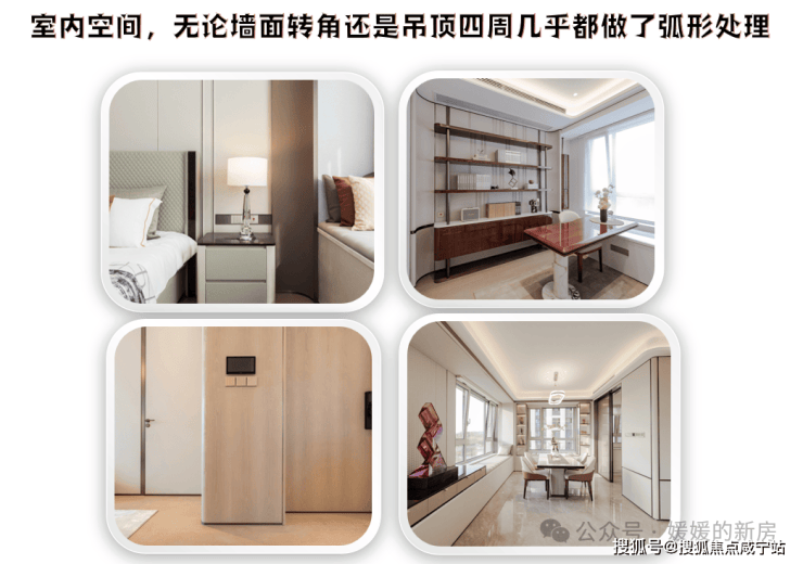 再比如室内,更是夸张,无论墙面转角还是吊顶四周几乎都做了弧形处理,不仅视觉上更显柔和,也更能达到现代轻奢与雅典温润的平衡。