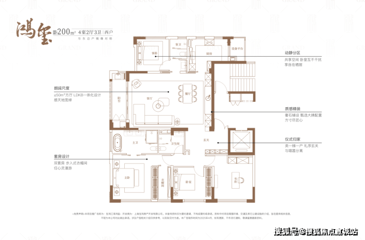 而在江湾鸿玺售楼处电话:400-8618-004纯200平户型尺度下,舒适度完全拉满。双套房+次卧+书房设计,近50平方厅布局,给三代同堂的家庭生活真正的体面。动区、静区互补干扰,主卧与次卧,皆有私属独卫空间,再没有百平三房的逼仄。