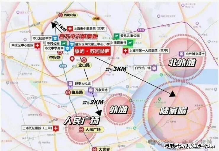 很多自媒体喜欢把象屿·苏河琹庐简单归类为“苏河湾板块”,这没错,但并不完全准确。我的观点是:它正好处在一个“黄金三角”的物理中心和心理原点。