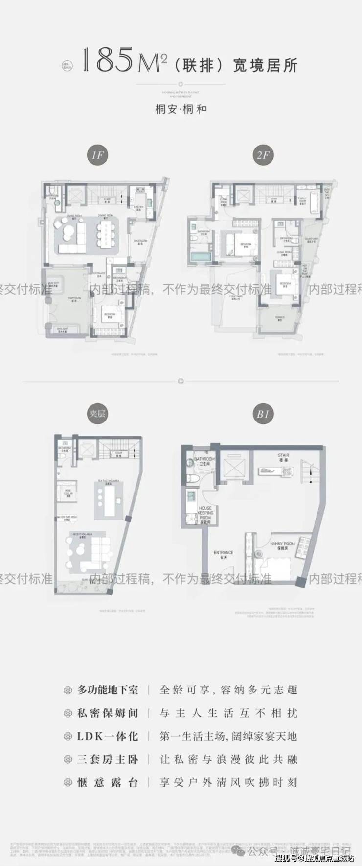 空间:地上 3 层 + 地下 2 层立体布局,得房率超 85%,附赠花园、露台、阁楼、地下室(层高 4.5 米)