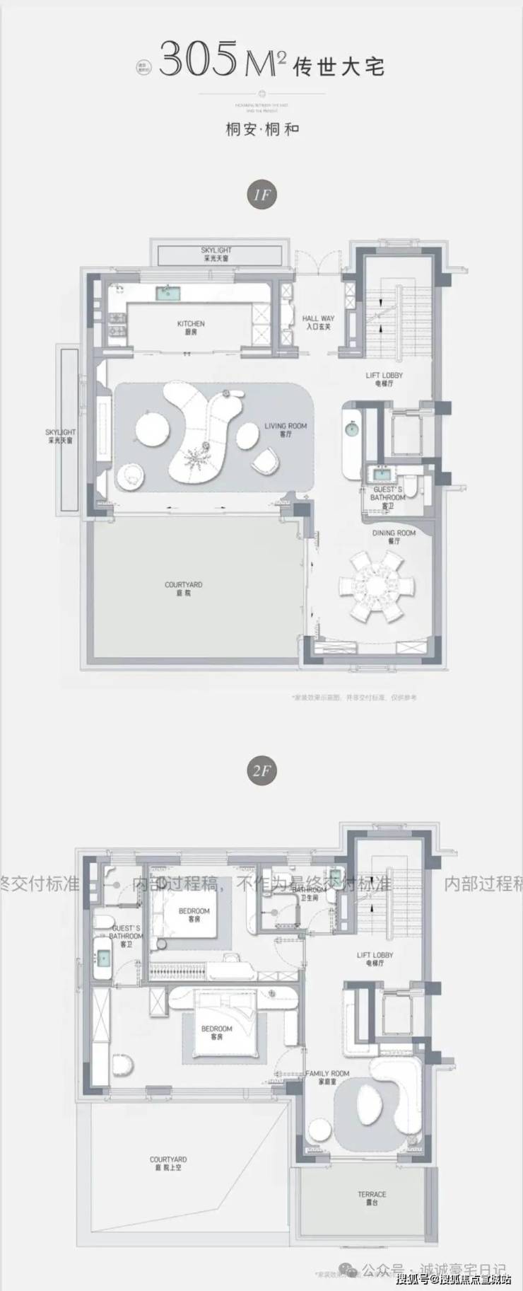建面约 230-305㎡:独门独院,私家庭院(最大进深 8 米),顶层星空阁楼,地下双车位 + 藏品空间,适配多代同堂 / 高端社交