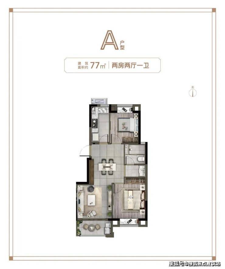 预算相对有限的,可以选这个建面约88㎡3房: