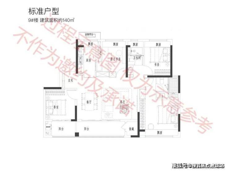 建面约140㎡4房,一梯一户,独立玄关;四开间朝南,大横厅+南向双阳台设计;U型厨房附赠飘窗,提高实用面积;该户型同样也是全卧飘窗。