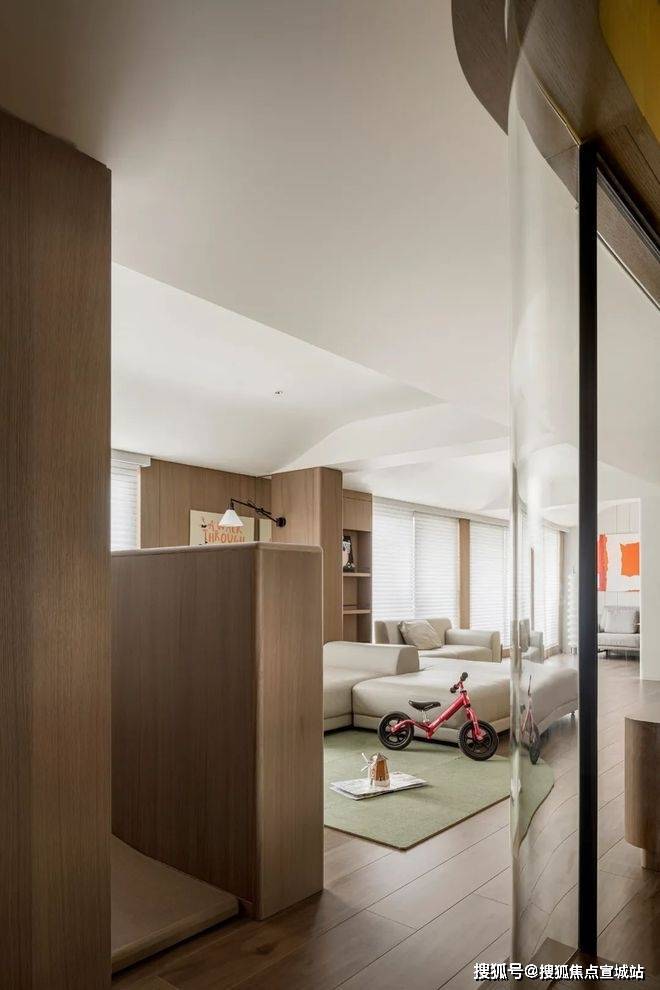 为孩子的成长提供最安全的立面处理,空间的阳角均采用了弧角处理,让孩子在成长过程中感受到家的关怀。更在视觉上创造一种柔和美感,令整个空间显得更加温馨舒适。