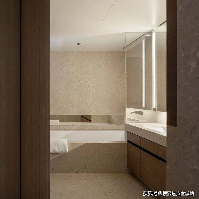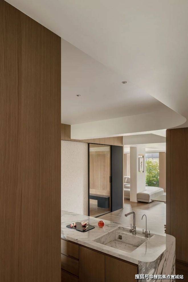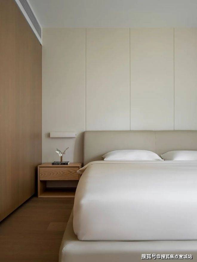 以探索柔软性和感性为目的,旨在为居住者提供一个放松身心的场所,卧房展现出柔和且静谧的视觉感受,引导人放松一切感官,身心可以短暂地抽离于琐碎的日常,在静谧中重新链接获取巨大的能量。