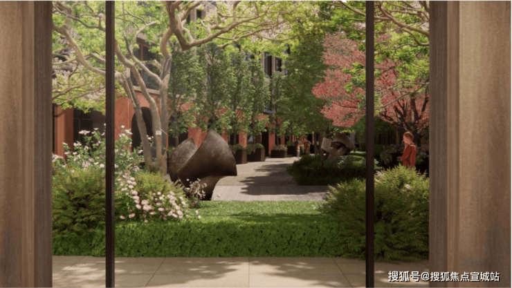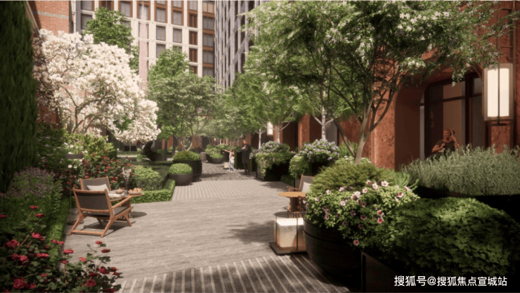 秩序与节奏是景观设计的基本表现形式,突显园林之美的同时也具备实用性。项目特别设计由宽入窄的线型园林,充分利用了每一寸空间,从开阔的弄堂巷道,到专属的私家庭院,也对应着从开放到私密的归家心理变化。