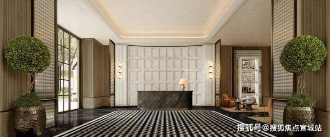 比如,挑高约6米的入户大堂、水系景观与艺术家共创作品交相辉映