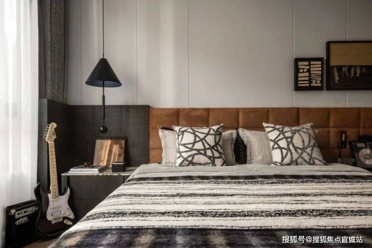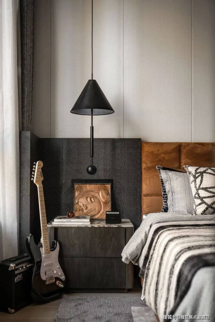 次卧的色调相对更为深邃,设计师通过不同的色彩选择,为静谧的氛围赋予了别样的诠释。有的空间明亮温暖,有的则内敛深沉,各种高品质材料相互搭配,编织出柔软而舒适的触感,再辅以恰到好处的艺术装饰,将空间的高级感提升到新的高度。