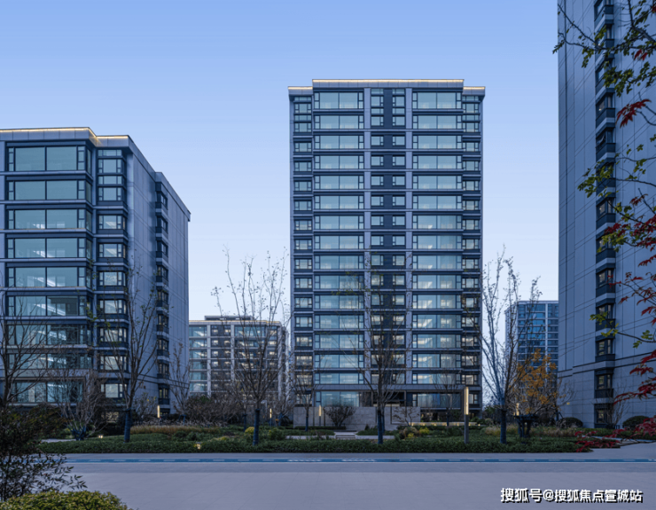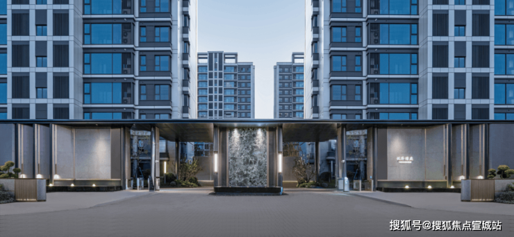 高定社区大门,星级酒店式迎接服务,营造具有格调的入户礼序,大面积玻璃通透轻盈的现代立面,映照蓝天流云、太湖光影,呈现优雅挺拔的质感。