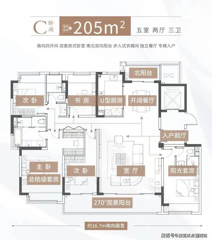 在产品打造方面,建面约205㎡揽湖洋房,畅享奢阔楼间距,视野无惧遮挡,远瞰诗意美景,近享阳光入室;同时约16.7m超大南向面宽+南北双阳台,让居者全方位感受温暖阳光和清风徐来;