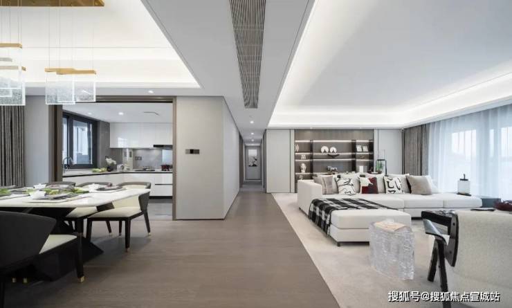 客厅与餐厅一脉相连,双厅连贯设计,大面宽客厅动线流畅,从空间尺度到功能设置面面俱到,承载欢乐的家庭时光。