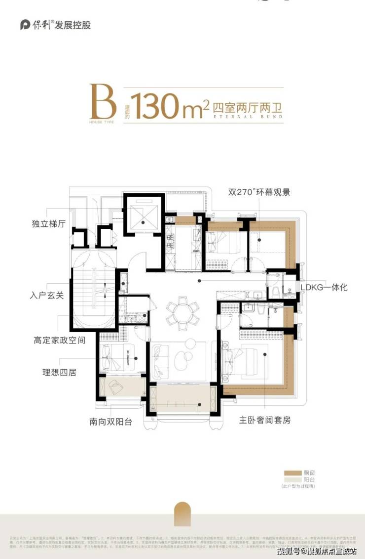 但事实上,保利外滩曜建面约130㎡的实际使用率做到了约94%,双阳台+双约270°视野+一梯一户独立电梯厅+多飘窗。