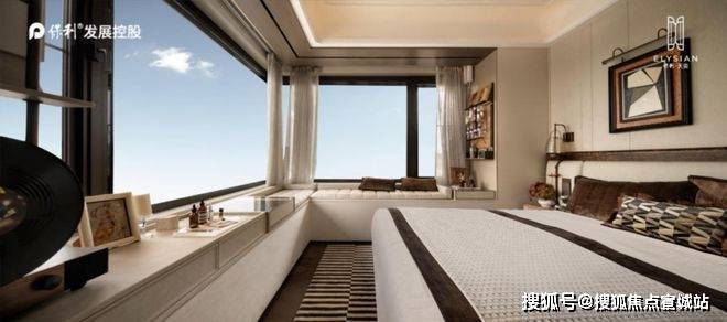 主卧房270°大转角飘窗,步入的衣帽间设计,奢华酒店行政套的设计手法,能带来纯正的居家度假式体验。