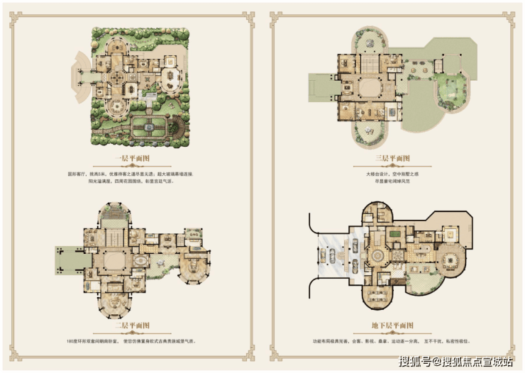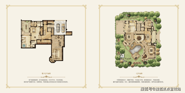 高配:大花园、大露台、下沉式庭院、全明地下室、私家电梯、外加多部车位